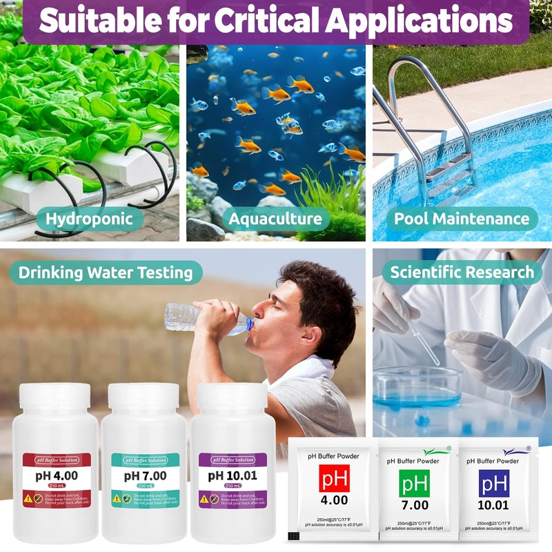 - Enhanced Long-Term Stability: Maintain pH values of 4.00, 7.00, and 10.01 consistently even after extended storage, reducing the need for frequent repurchases. Our advanced formula ensures lasting precision for reliable testing.