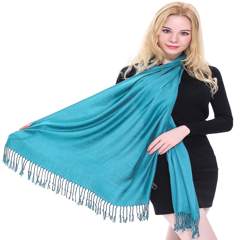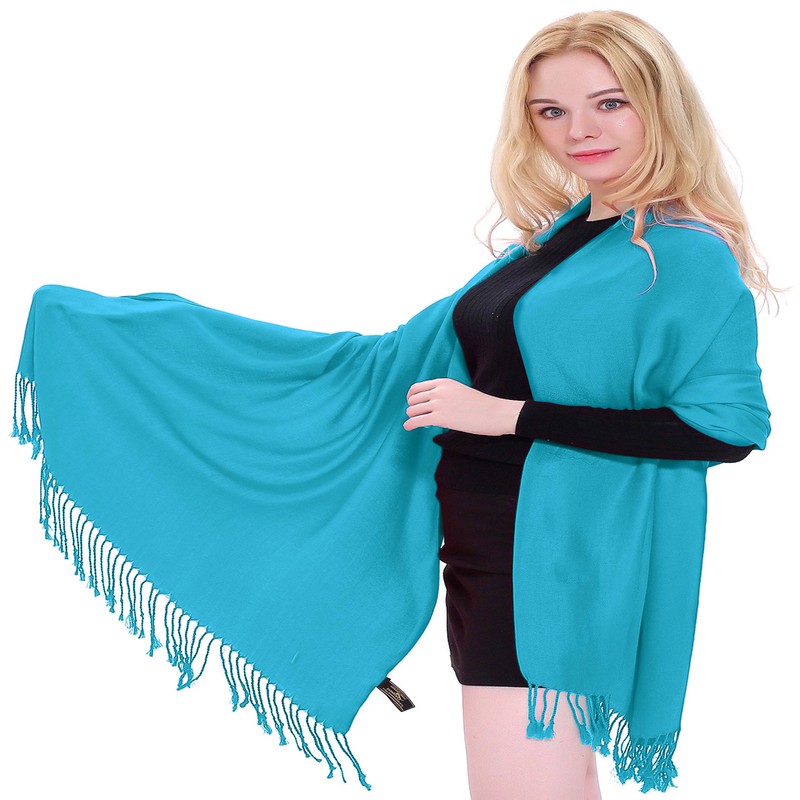 CJ Apparel Women's Hand Made Nepalese Tassels Shawl Pashmina Scarf, Deep Sky Blue, 35, Unit size