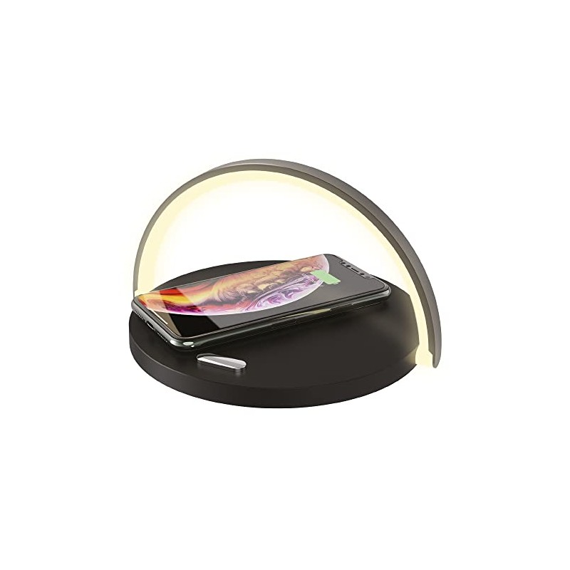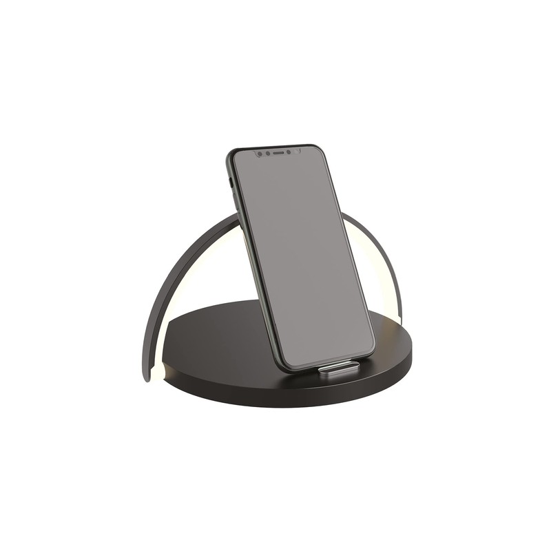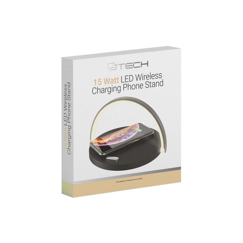 CJ Tech 15 Watt Fast Wireless Qi Phone Charger with Built-in Stand and LED Mood Light, 3 Brightness Settings, One Touch On/Off Button, Automatically Powers Off Once Fully Charged - Black