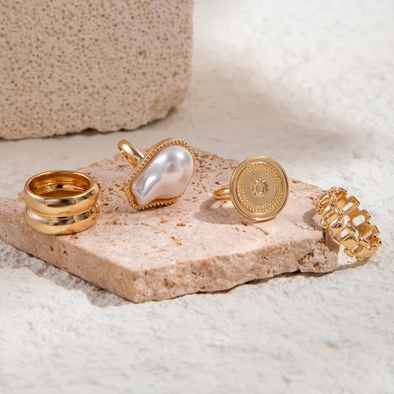 - Fashion Statement Ring:This chunky gold rings set offers various options to create your own unique style.These trendy rings feature an exaggerated geometric design, making them a fashionable statement piece.