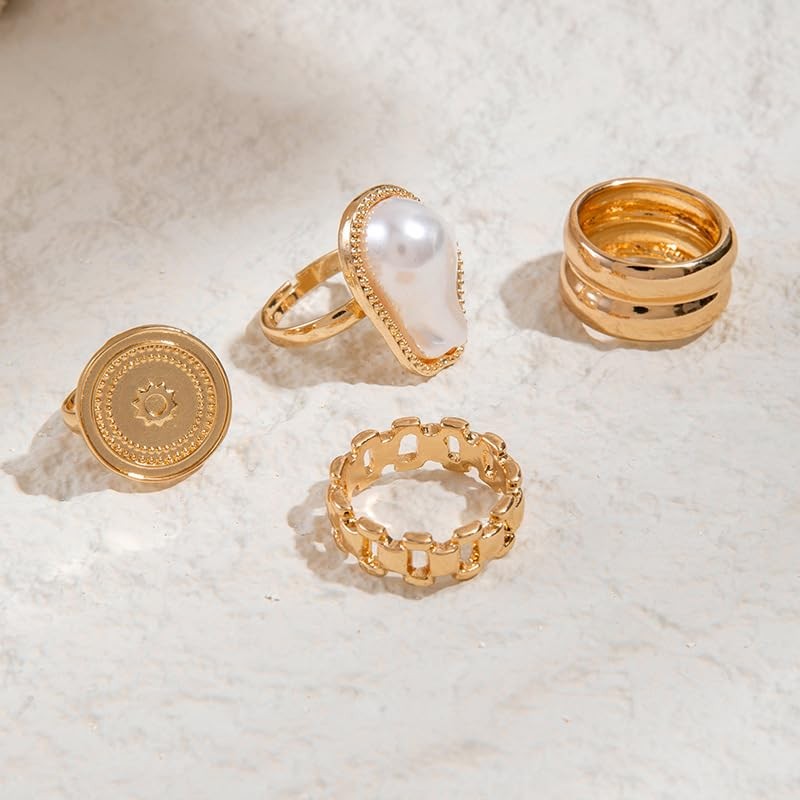 CJIAYUJEW Chunky Gold Rings Set for Women,Trendy Gold Stackable Open Knuckle Ring (G-4pcsPearl)