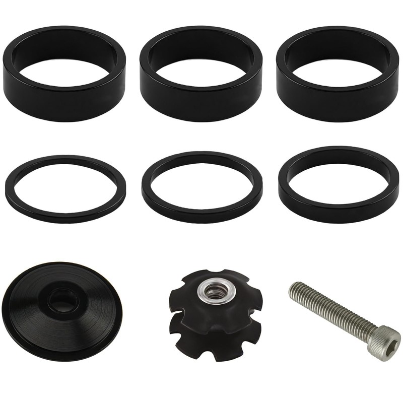 - UMFASSENDES SET – Enthält 9 Teile: 1x 2 mm, 1x 3 mm, 1x 5 mm, 3x 10 mm Spacer, 1 Ahead Kappe (Top Cap MTB), 1 Vorbau Schrauben und 1 Steuersatzkralle. Alles, was Sie für eine perfekte Montage benötigen.