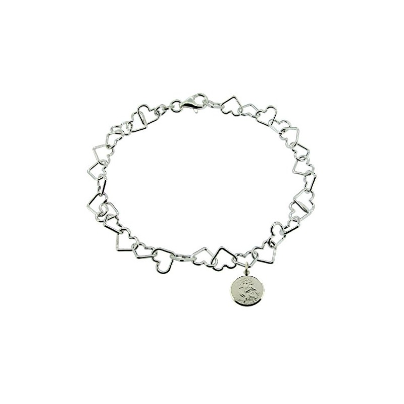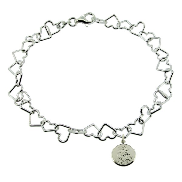 - Sterling Silver Ladies Heart Link Charm Anklet With St Christopher Charm
