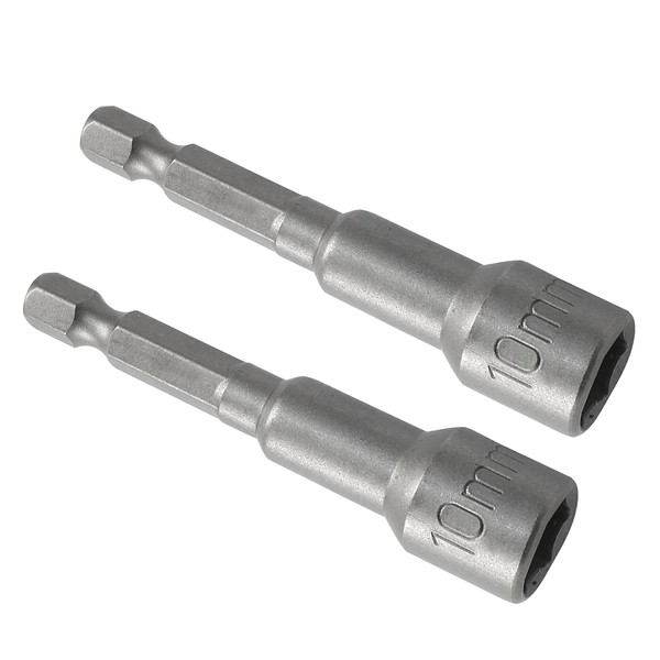 - ✿Versatile Set: The set includes 2 x hexagon socket in same sizes. Size: 10mm Nut Driver, Overall Length: 65mm. Universal 1/4" hex shank fits a variety of quick-change chucks and drill, driver, or screw-gun.