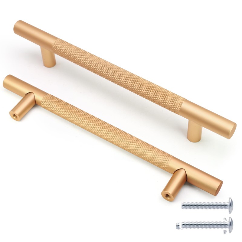 - ✿T Bar Kitchen Cabinet Handles: Package contains 6 x t bar kitchen cupboard handles with mounting screws, Colour: Gold, Design: Knurled, Overall Length: 180mm / 7.09 inch, Height: 32mm / 1 1/4 inch, Bar Diameter: 12mm / 0.47 inch, Center to Center: 128mm / 5 inch. Each wardrobe door handles pack separately to avoid damage.