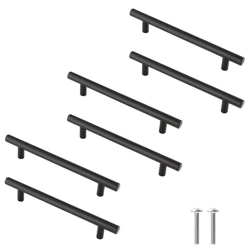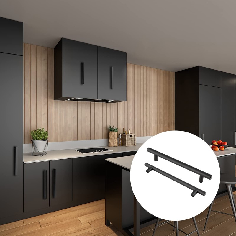 - ✿T Bar Kitchen Cabinet Handles: Package contains 6 x t bar kitchen cupboard handles with mounting screws, Colour: Matt Black, Overall Length: 150mm / 6 inch, Height: 32mm / 1 1/4 inch, Bar Diameter: 12mm / 0.47 inch, Center to Center: 96mm / 3 3/4 inch. Each wardrobe door handles pack separately to avoid damage.