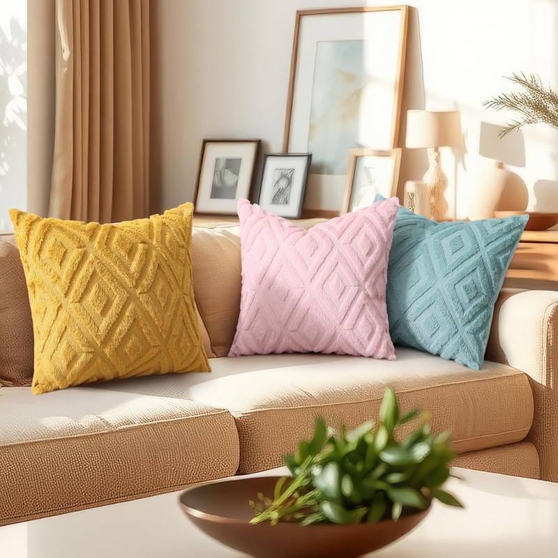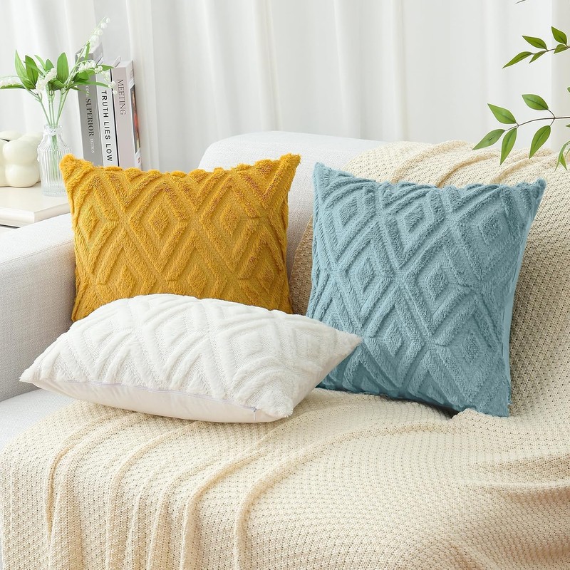 - 【FASHIONABLE 3D DIAMOND PATTERN】 - The decorative pillow cases 18x18, inspired by traditional aesthetics, are designed with geometric diamond patterns, forming an elegant and generous style. Meanwhile, the 3D plush embroidery design, makes the fluffy luxury throw pillow covers look plump and cute. That's sure to lend some eye-catching appeal to your space