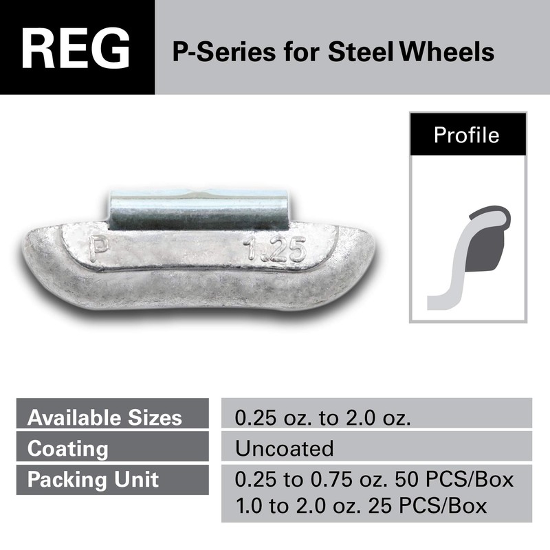 Specification: P type, 1.75oz, 49g, total 25pcs per box. Used in balancing all types of steel wheels. Suitable for passenger cars, light trucks, SUVs, Vans& full size pickups
