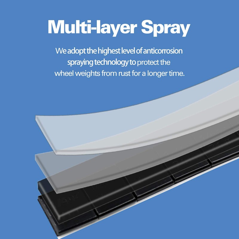 - Anti-Corrosion– The surface layer of the wheel weights is first electrogalvanized, then apply multilayer and omni-dimension plastic spraying process.