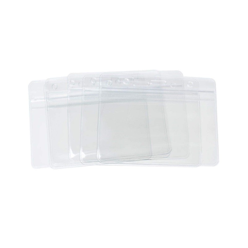 CKB LTD EXPO Large Horizontal/Landscape Clear/Transparent ID Waterproof Plastic Card Holder with Seal Closure for Exhibitions, Bag Size 110 x 90 mm, Card Size 100 x 70 mm - Pack of 50