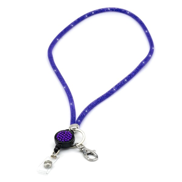 CKB LTD Purple Sparkle Lanyard Rhinestone Glitter Crystal Gems Neck Strap with Swivel Metal Clip and Sparkly Bling Retractable reel ID Badge Holder Clip 1pc