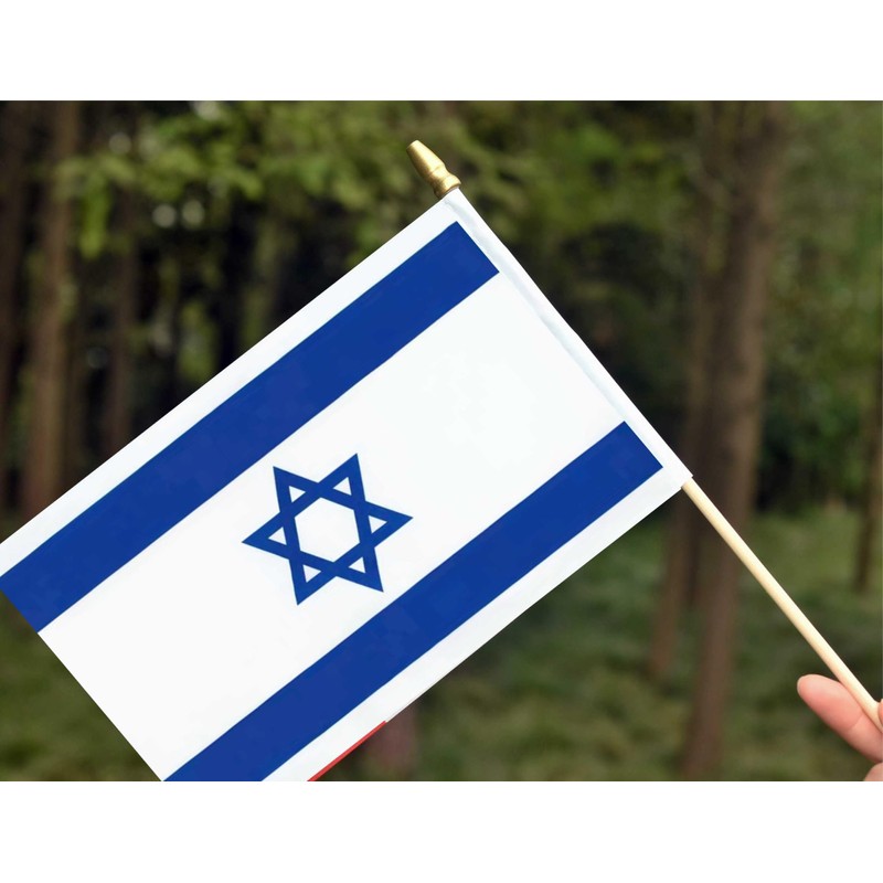 Small Israel Flag on stick are made of polyester, sticks are made of wooden.