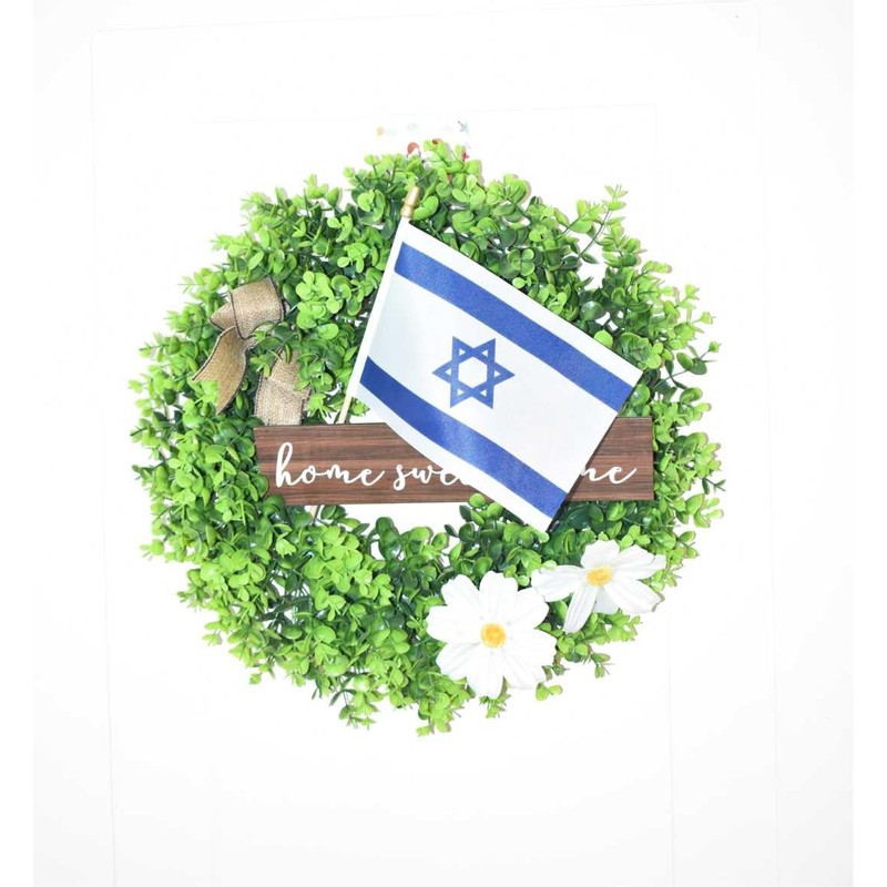 Small Israeli Flag are made of polyester fabric, sticks made of wooden with antique gold/bronze spears top.