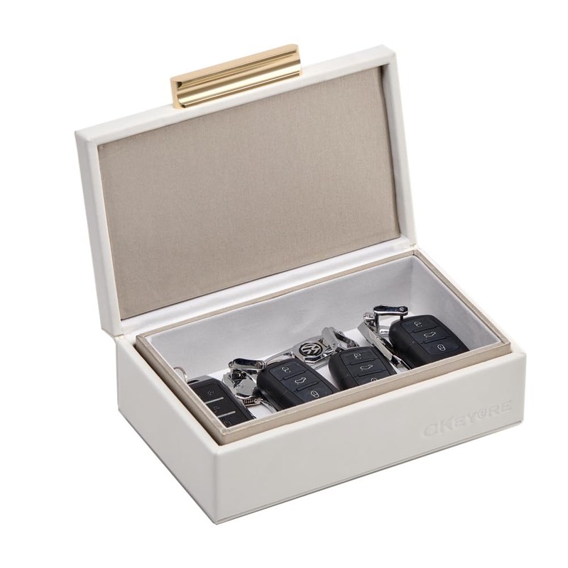 CKEYURE Key Box | Faraday Box for Car Keys | Car Key Signal Blocker Box | RFID Key Box | Key Holder | Key Safe | Signal blocking key box for car security | One Hand Operation (White)