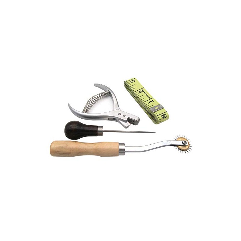 - contains 1 each of the following: 1. Light-Weight, Pattern Notcher. 2. Light-Weight, Wooden-Handled Awl. 3. Light-Weight, Wooden-Handled 7” Pattern Tracer Wheel. 4. Durable, Flexible Cloth Tape Measure (60 inches – 152 cm).