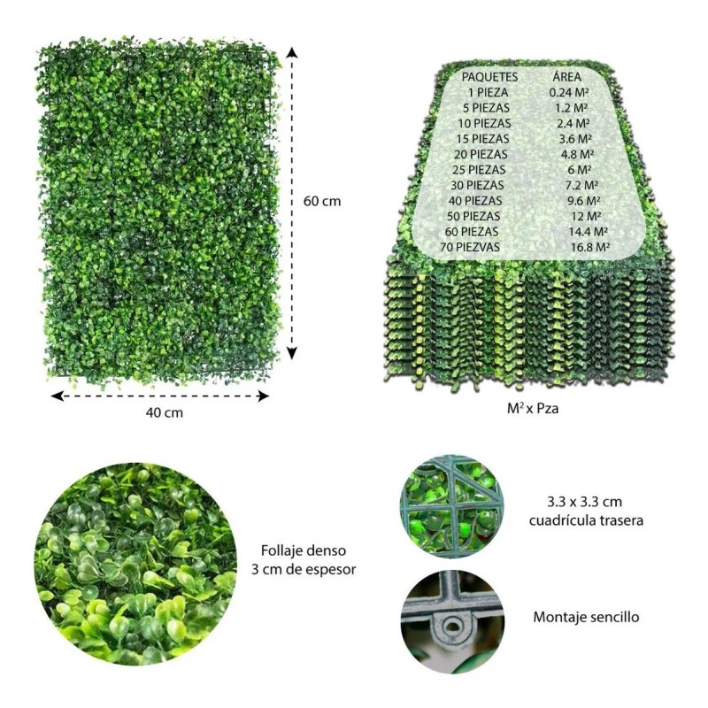 Hermoso follaje artificial sintético para muros o paredes verdes, adorna tu casa con una hermosa pared hecha de plástico resistente al exterior con un diseño natural. Este follaje artificial puede ser utilizado para el interior como para el exterior.