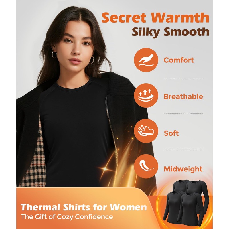 - 🔥Instant Winter Warmth:Ideal for freezing dog walks & snowy commutes! Our thermal shirts for women trap heat without bulk—no more shivering under your winter coat during subzero days.