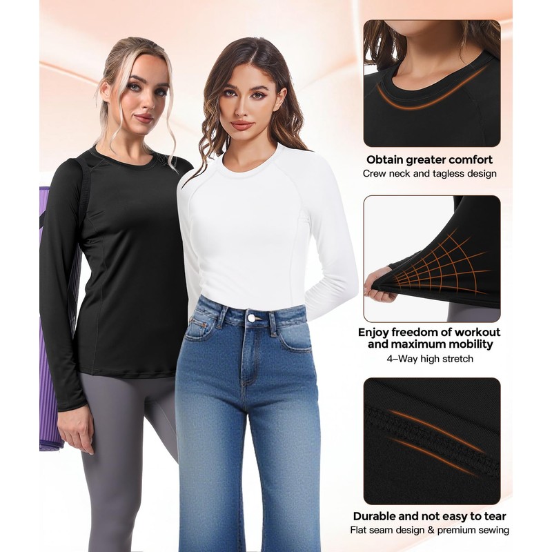 - 🧘Total Movement Freedom:Move freely in 4-way stretch fabric that moves with you. Perfect for compression shirts woman seek during yoga flows, trail runs, or chasing toddlers around the house.