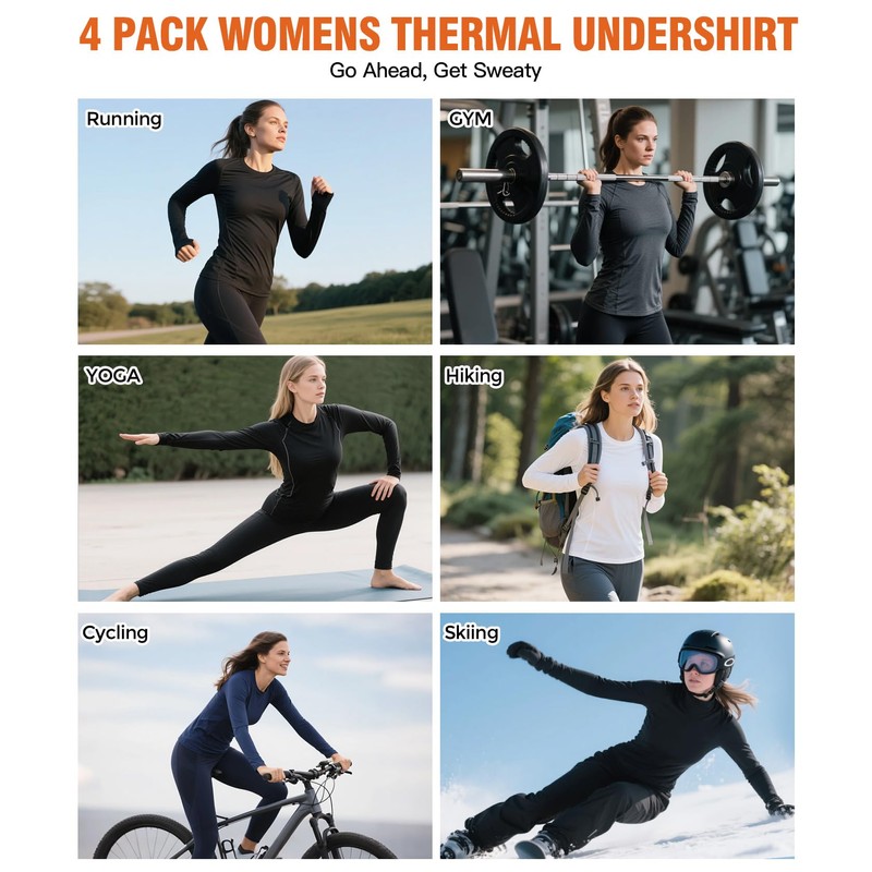 CL convallaria 4 Pack Women's Thermal Shirts Long Sleeve Athletic Compression Base Layer Tops for Cold Weather