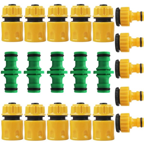 - Various quick couplings: 5 pieces 2-in-1 hose fittings, 5 pieces green double head quick hose fittings, 10 pieces quick couplings, can be connected directly to water gun and hose or sprinkler