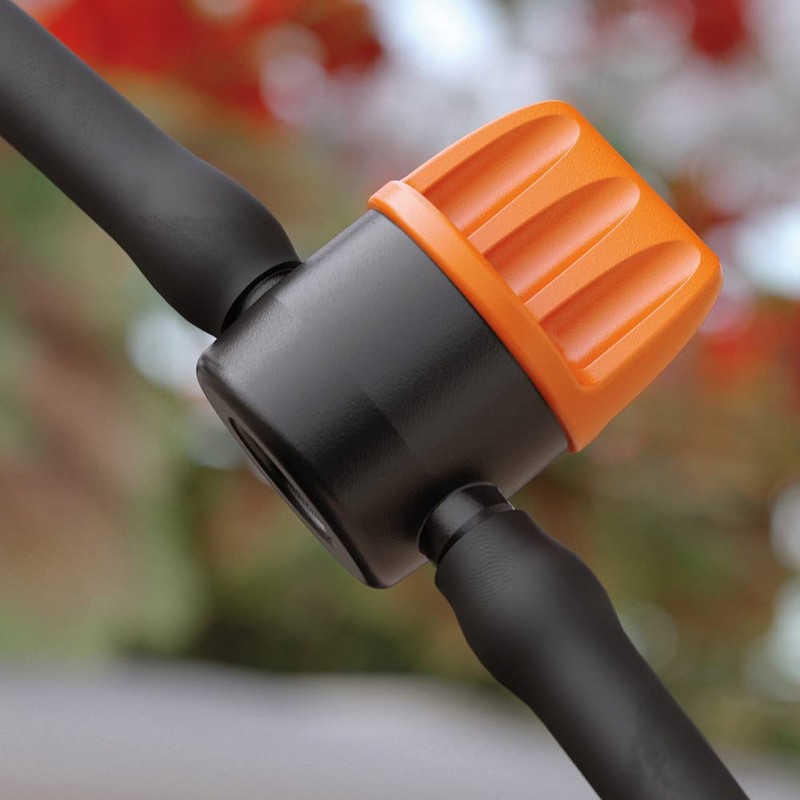 Starter kit for drip irrigation system for up to 20 potted plants. Very suitable for balconies, patios, and greenhouses. Can be extended with other components of the RainJet accessories range as desired.