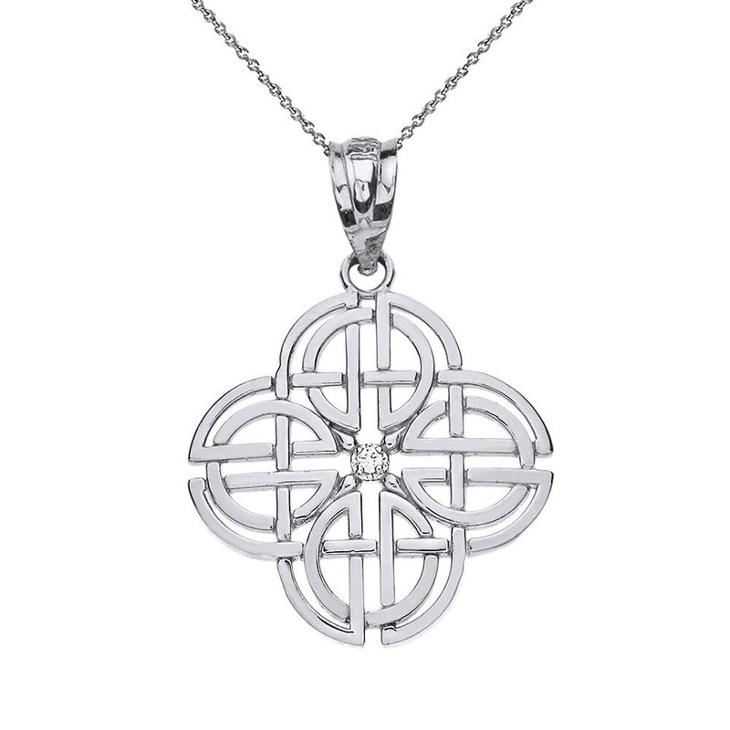 Claddagh Gold .925 Sterling Silver Single CZ Celtic Knot Geometric Circular Pendant Necklace-20