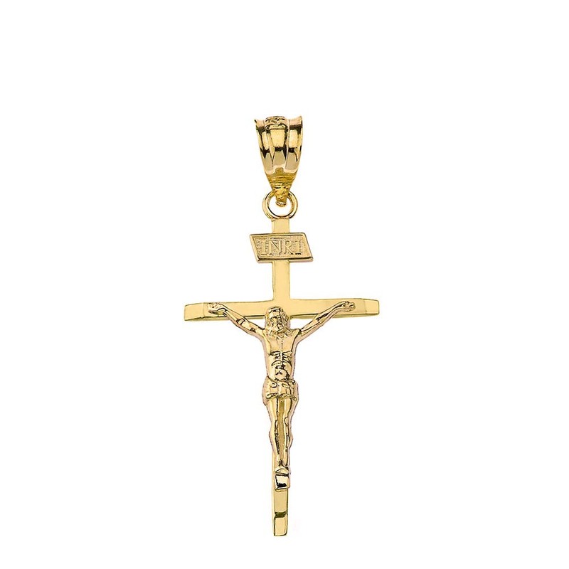 Claddagh Gold - Solid 10k Yellow Gold Catholic Jesus Christ on INRI Crucifix Cross Pendant (1.19")