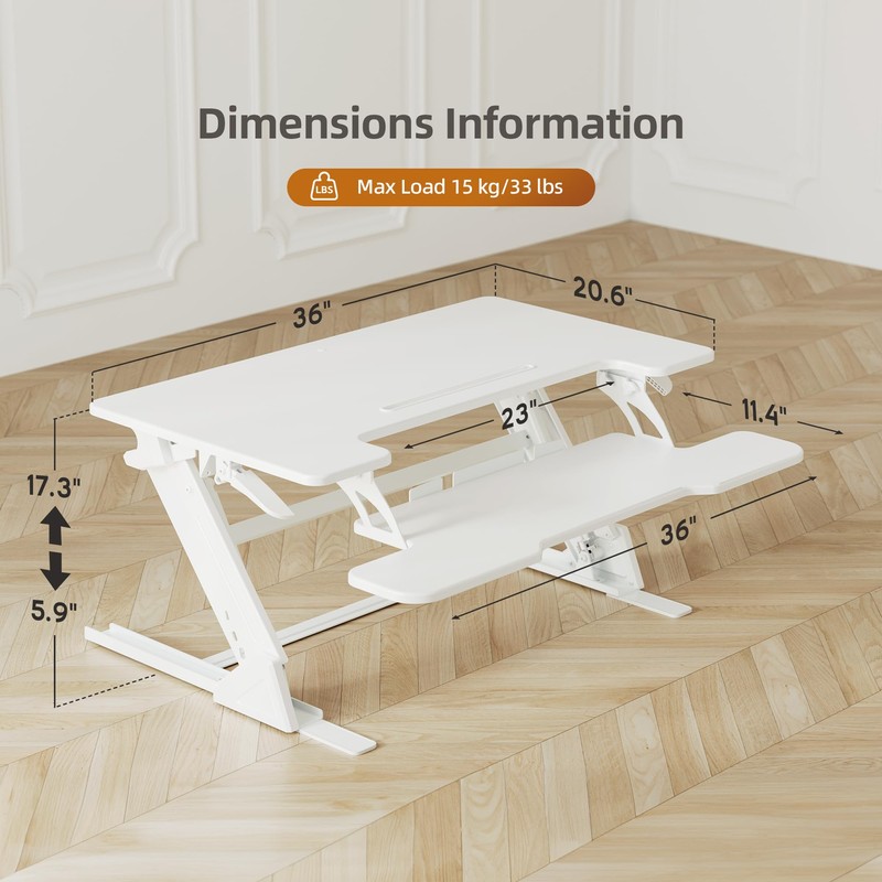 - Sturdy and Stable Structure: It has a robust Z-lift structure, with the stand-up desktop capable of holding up to 33 lbs and the keyboard tray up to 4.4 lbs. Plus, its lightweight and portable design makes it easy to pick up and move the desk riser wherever you need, and store it out of the way when not in use.