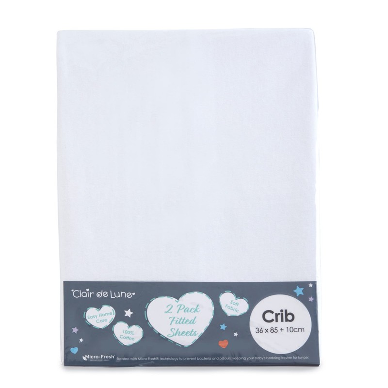 Clair de Lune | Micro-Fresh 2 Pack Fitted Crib Sheets | 85.5 x 36 cm | 100% Cotton Universal Elasticated Fit | Anti-Microbial | Hypoallergenic