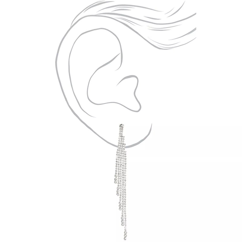 Claire’s Claires Silver Rhinestone 4 in Fringe Drop Earrings Pierced Post Prom New Years