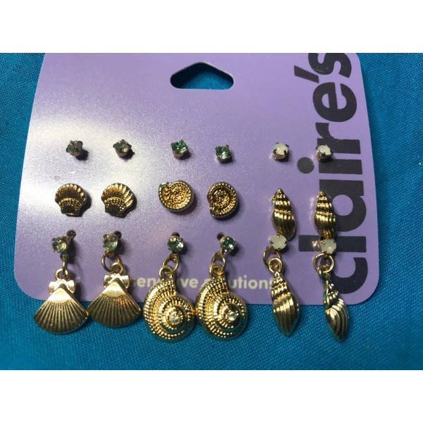 Claire’s Nine Pairs Of Claire's Gold tone Stud Seashell And Dangling Pierced Earrings New