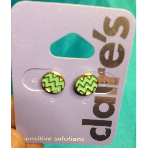 Claire's One Pair Claire's Round Gold Tone And Aqua Zigzag Button Pierced Earrings New!