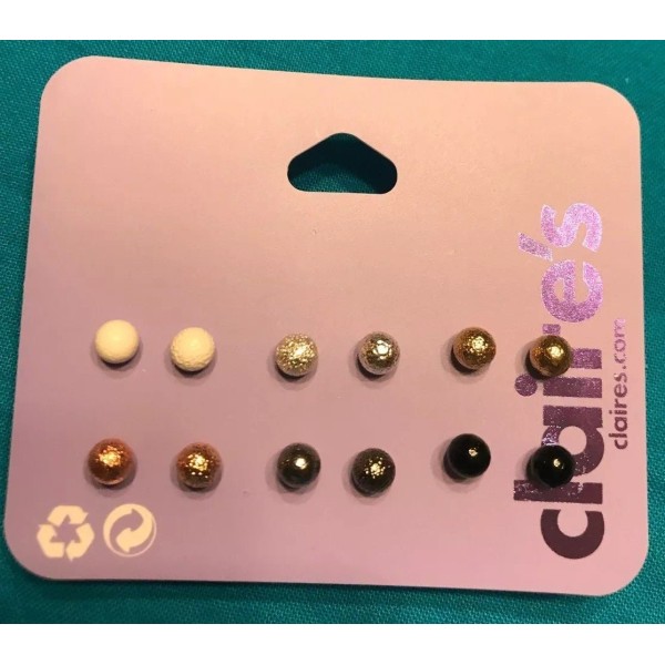 Claire’s Six Pairs Claire's White Silver Gold Rose Gold Dark Silver Black Ball Earrings