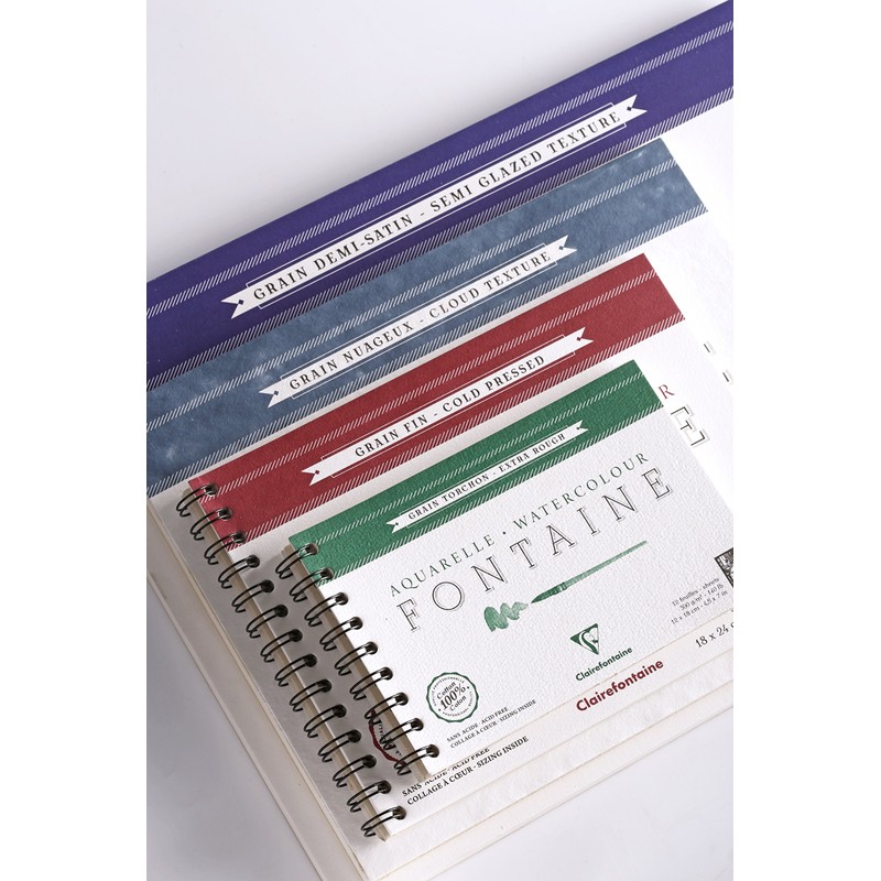- Clairefontaine Watercolour Paper Pad The pad is double spiral and contains 12 sheets. The paper is coarse grain orchon made from 100% rag, 300 g. Size: 12 x 18 cm. Colour: white