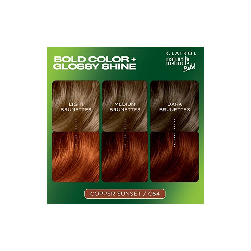 Clairol Natural Instincts Bold Permanent Hair Dye, C64 Copper Sunset Hair Color, Pack of 1 | Clairol