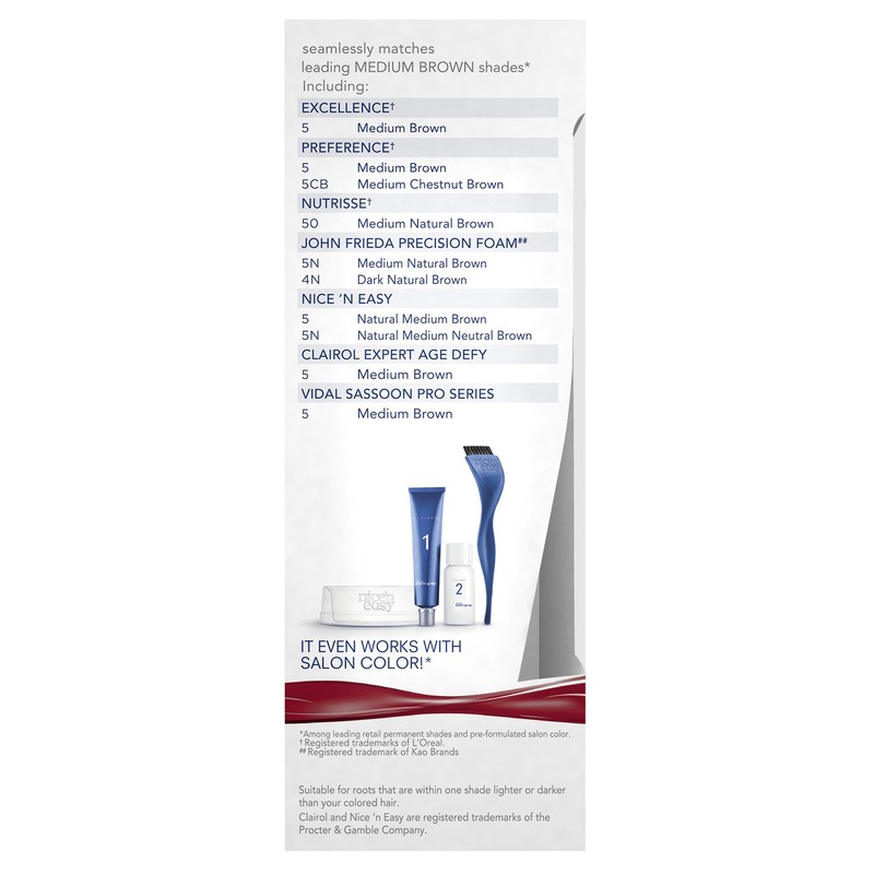 - Clairol Nice 'n Easy Root Touch-Up, 5 Medium Brown, Permanent Hair Color, 1 Kit