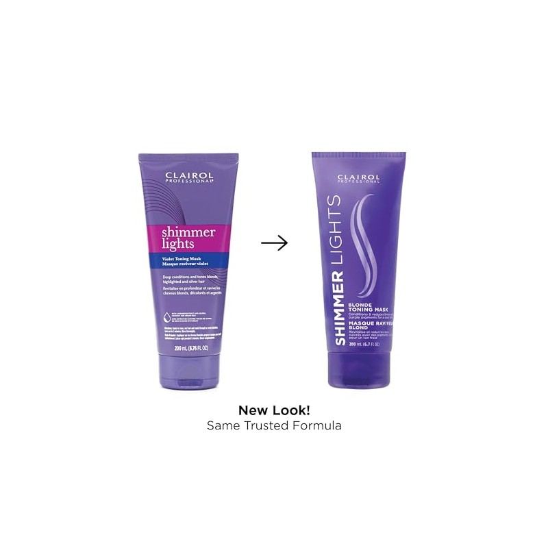 Product DescriptionYour blonde has a new best friend! Shimmer Lights Violet Toning Mask provides the perfect balance of violet toning and deep conditioning to keep blonde hair bright and shimmering with breakthrough technology. Violet pigments neutralize brass for a cool result with lavender extract and a special blend of jojoba, coconut and argan oils. Perfect for blonde, highlighted, and silver hair.Brand StoryShimmer Lights is the first line of defense against brass. Regarded by many as the best maintenance products for blonde, silver, and highlighted hair, Shimmer Lights award-winning Shampoo and Conditioner.