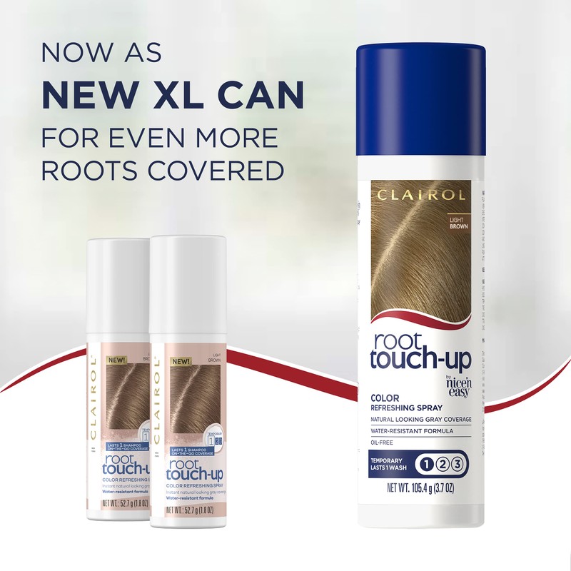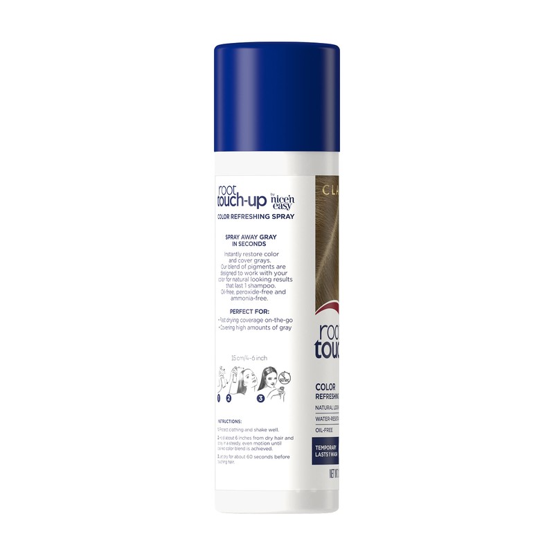 Spray away grays in seconds with Clairol Root Touch-Up Temporary Refreshing Color Spray. Extend the life of your color with natural-looking, water- resistant gray coverage that lasts until your next shampoo. Just spray onto your roots and hairline, then go! Travel-sized spray fits in your purse or makeup bag for fast touch ups, anywhere and anytime.