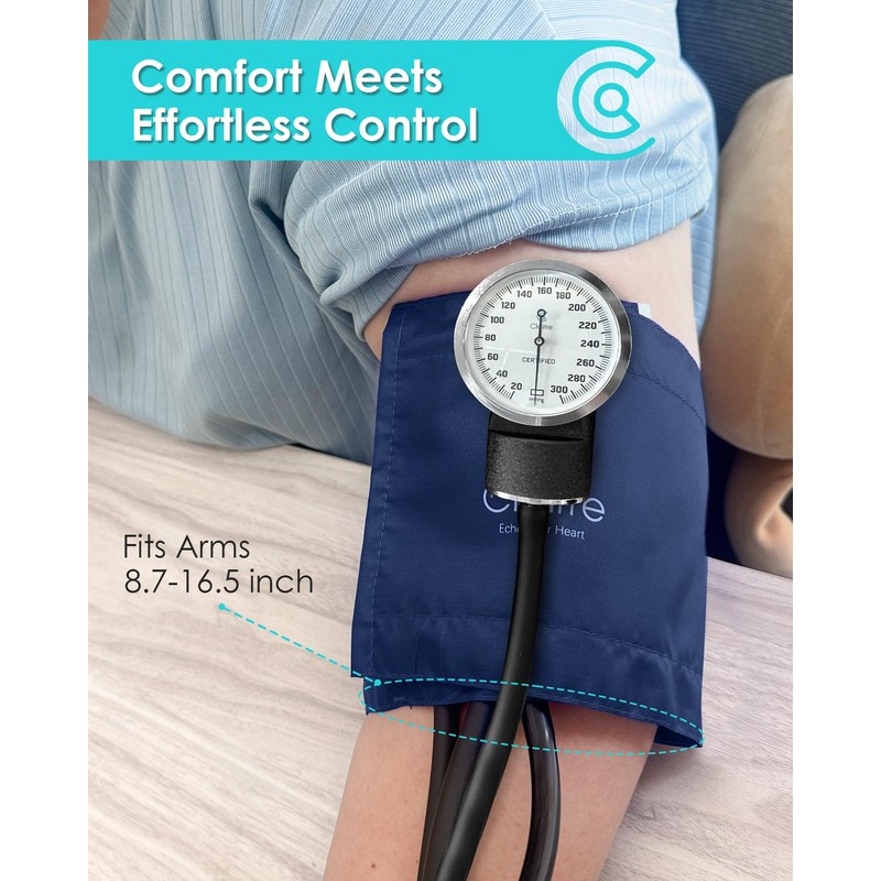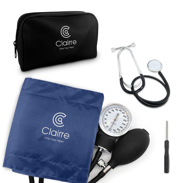 Clairre Manual Blood Pressure Cuff and Stethoscope Kit & Carrying Bag, Aneroid Sphygmomanometer for Nursing Students & Home Health Monitoring, Universial Adult Size, Navy Blue