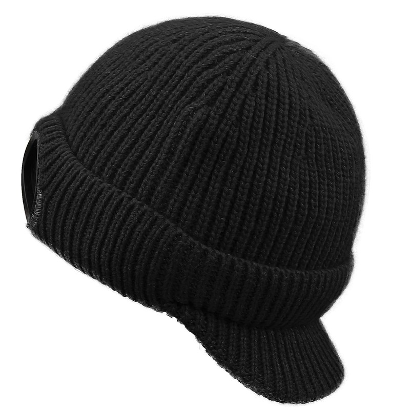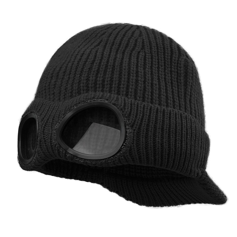 Clakllie Beanie Cap with Visor Daily Knit Warm Hat Goggles Trendy Newsboy Ski Cap Cold Weather Winter Hat,Black