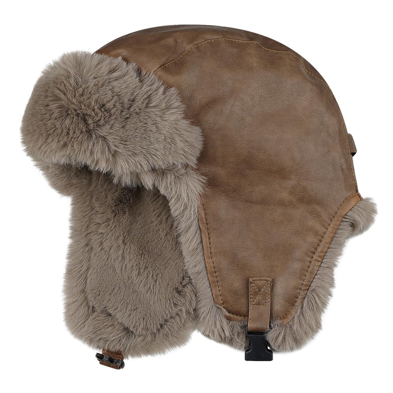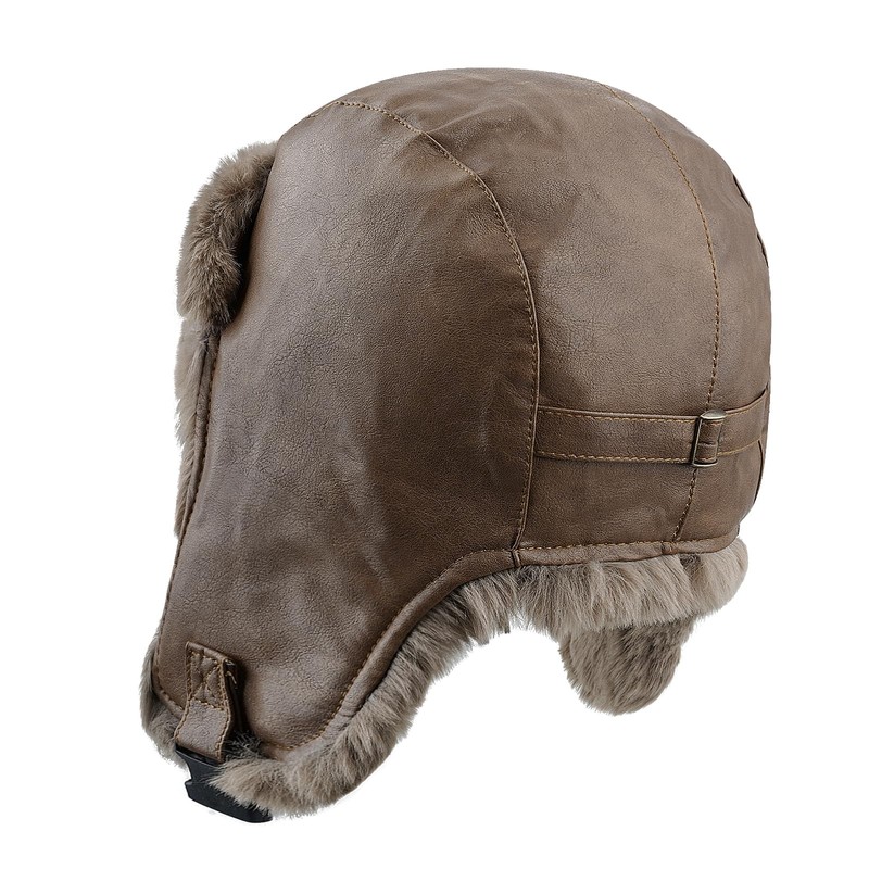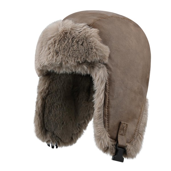 Clakllie Men's Trapper Bomber Cap Eskimo Hat Winter Warm Trooper with Earflaps Outdoor Ski Cap Leather Aviator Cap,Brown