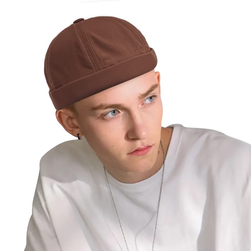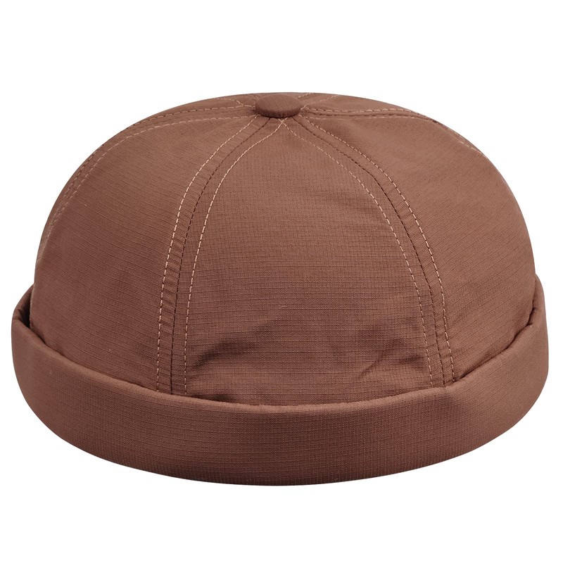 Clakllie Quick Dry Brimless Hat Lightweight Docker Hat Skullcap Rolled Cuff Beanie Hat No Brim Watch Cap Landlord Hat,Brown