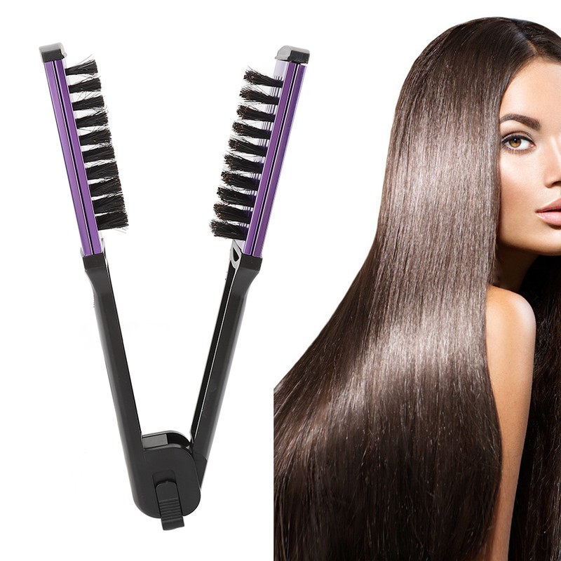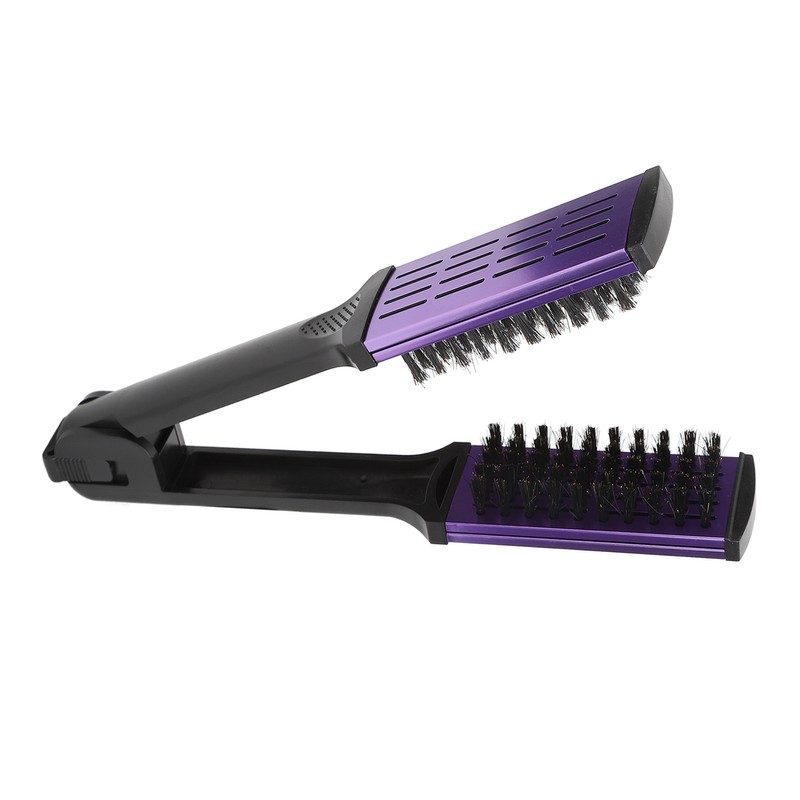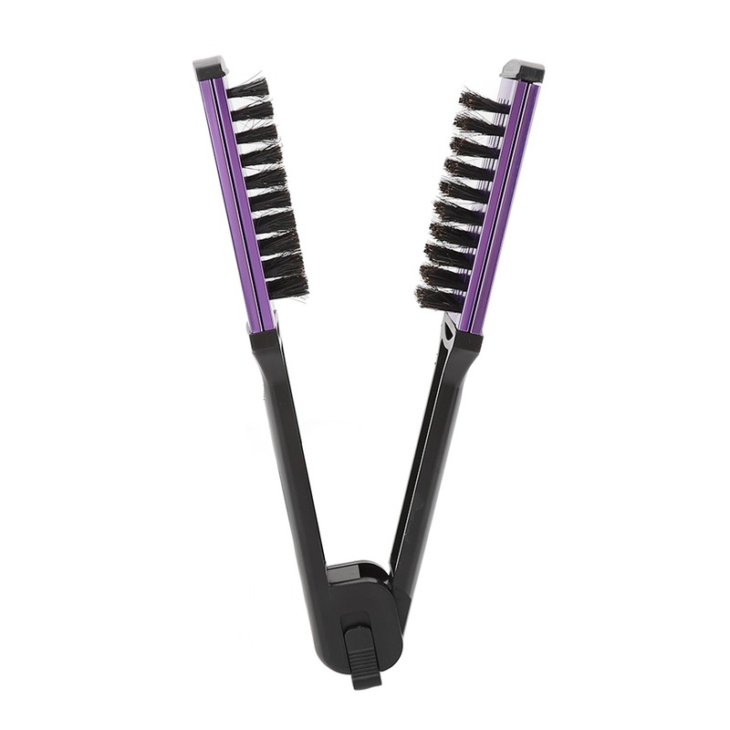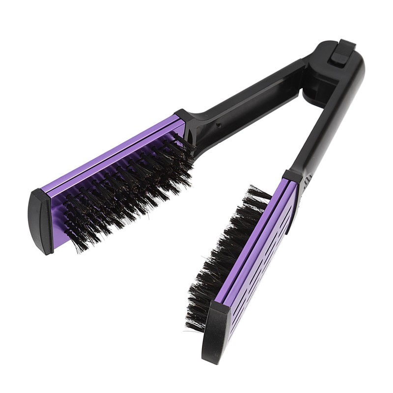 Clamp Flat Brush Double Sided Hair Straightening Artificial Bristle Splint Fl...