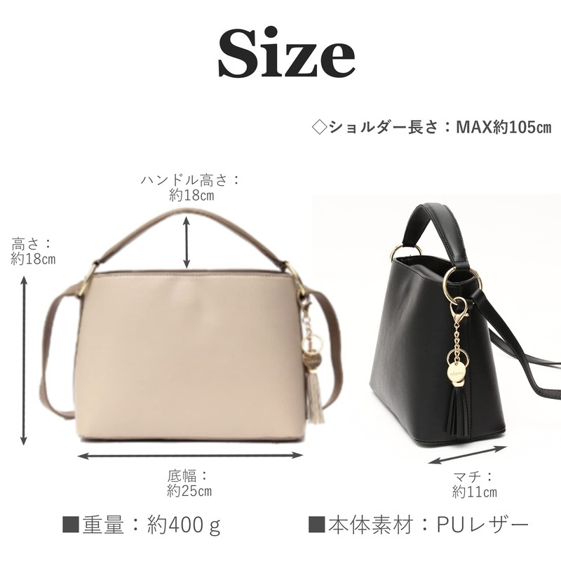 - Material: PU Leather; Color: Black, Beige, Brown (New Color); Size: Height: 7.1 inches (18 cm), Width: 9.8 inches (25 cm), Gusset: 4.7 inches (12 cm); Removable Shoulder Length: 45.3 inches (115 cm), Gold with key charm