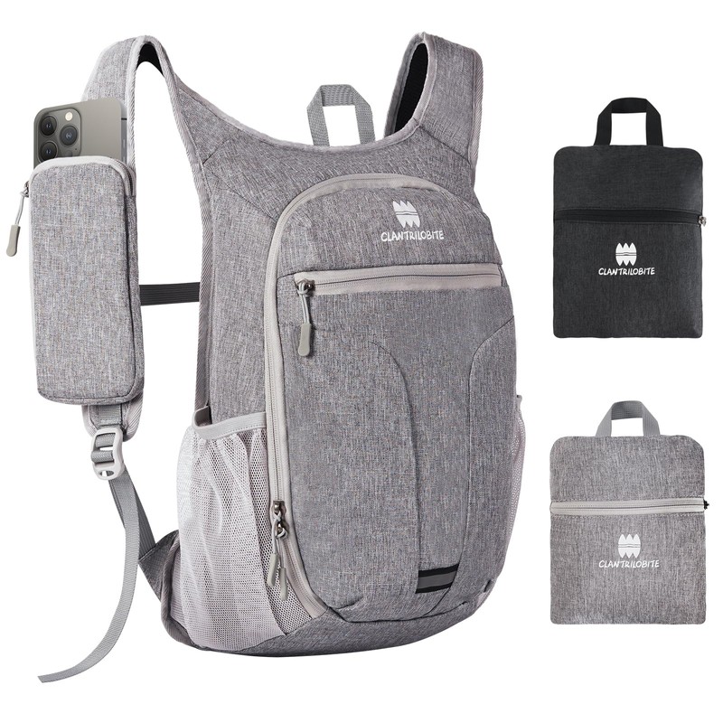 CLANTRILOBITE Lightweight Packable Backpack for Women Men - 20L Small Waterproof Foldable Daypack for Travel, Hiking, and Daily Use, Adjustable Chest Strap Multiple Pockets, Gray