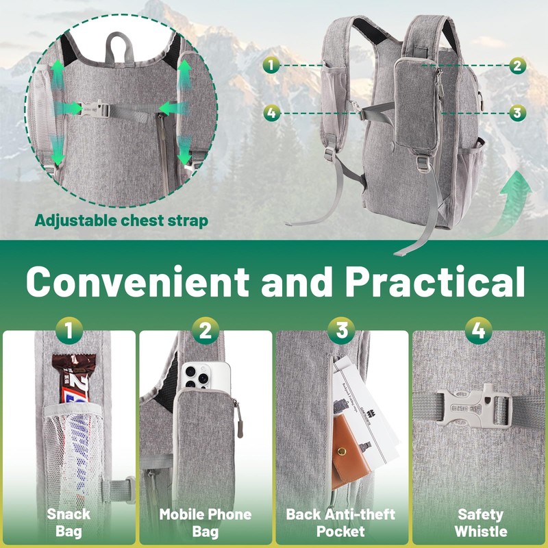 • [Smart Storage & Organization] Stay organized on the go! This backpack features a main compartment for larger items, a front zipper pocket for quick access, two shoulder strap pockets (the left side fits a 7-inch phone, while the right side has a mesh elastic bag for snacks or small essentials), two side mesh pockets for water bottles or umbrellas, and a hidden anti-theft zipper pocket to keep your valuables secure.