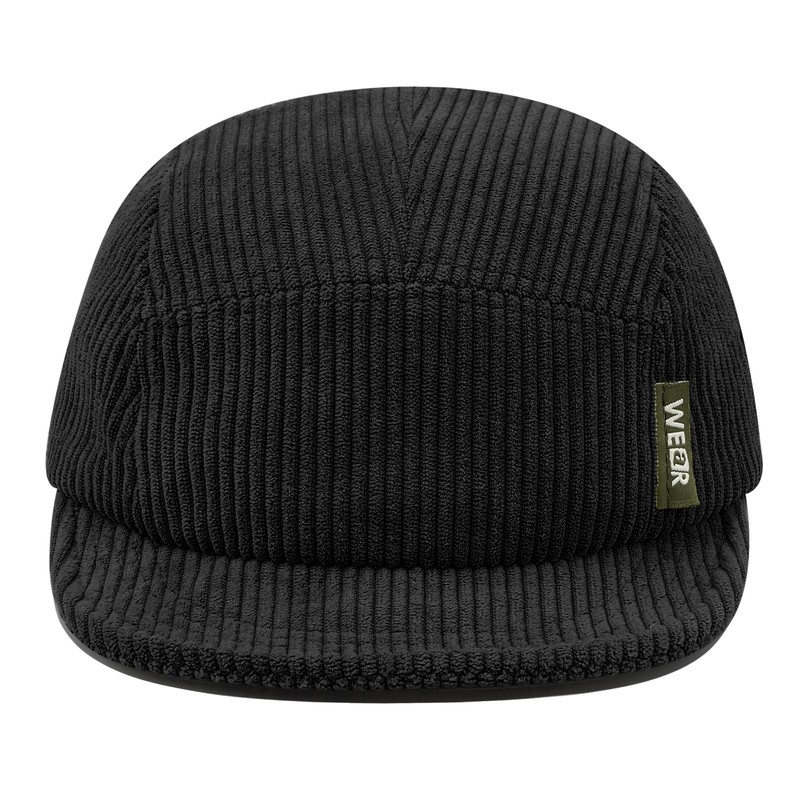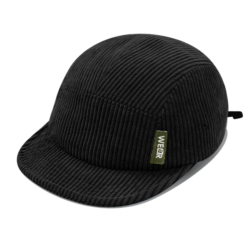 CLAPE 5 Panel Short Brim Cap Men's Retro Cord Baseball Cap Women's Adjustable Trucker Cap Flat Brim Snapback Cap Foldable Dad Hat, DSBH10-Black