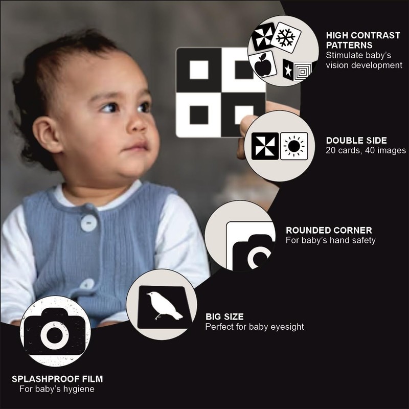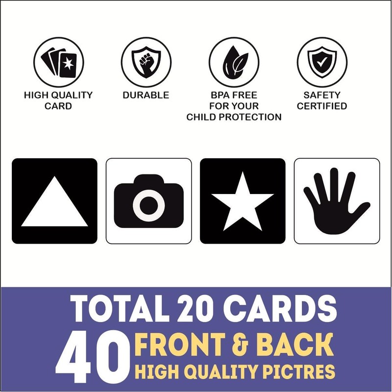 Clapjoy Black and White | 40 Objects | 20 Flash Cards for Infant Babies for Age 0-12 Months Visual Stimulation and Brain Development |Montessori Sensory Cards| Best Gift for New Born Babies