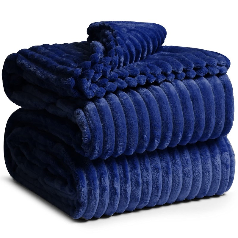 Clara Clark Cut Plush Fleece Throw Blanket - Twin Size - Lightweight Super Soft Fuzzy Luxury Bed Blanket for Bed - Machine Washable - (66x90) (Navy Blue)