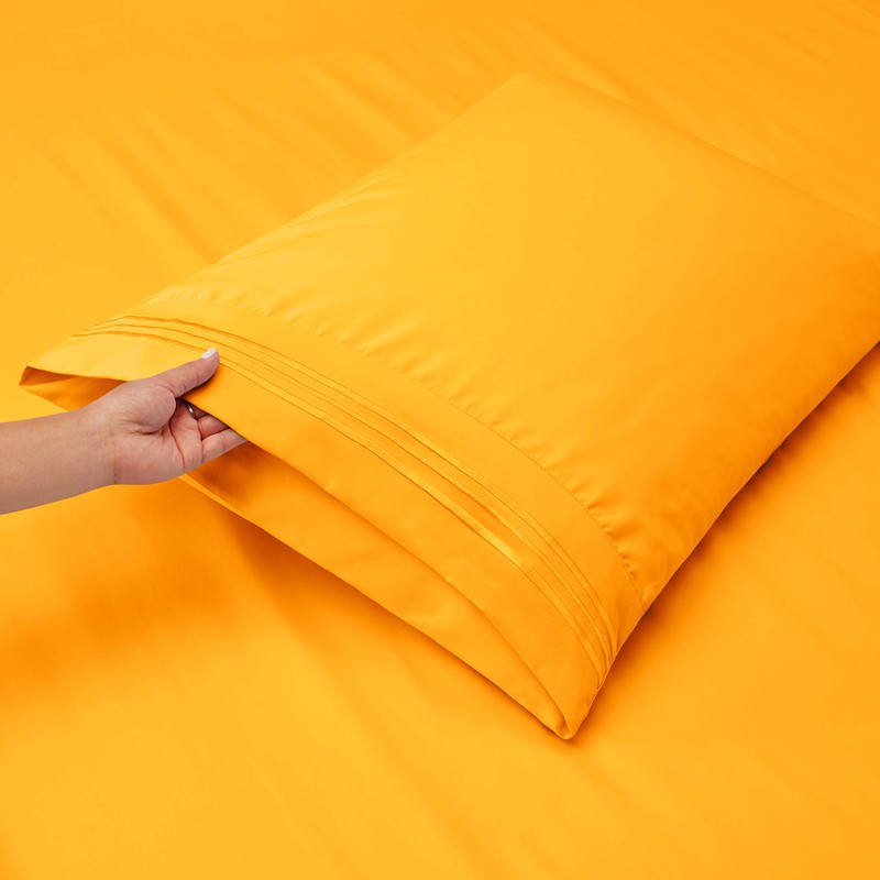 Clara Clark Flex Top King Sheets, 6 Piece Set - Hotel Luxury Sheets for Top Split King Bed, Super Soft Bedding Sheets & Pillowcases, Head Split King Sheets, Yellow